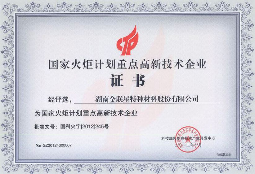 公司一貫注重技術研發和科研人才的培養,將科研開發作為公司可持續發展的重要任務之一,與武漢大學、中南大學、中科院沈陽金屬研究所等高校和科研所建立了產學研戰略合作伙伴關系,承擔了國家火炬計劃、科技型中小企業技術創新基金、國家重大科技成果轉化和國家重點新產品計劃項目,擁有相關產品生產設備、生產工藝及應用方案的17項發明專利和4項實用新型專利,多項成果獲得湖南省及岳陽市科技獎項,2014年公司董事長陳建春榮獲岳陽市科學技術突出貢獻獎。
